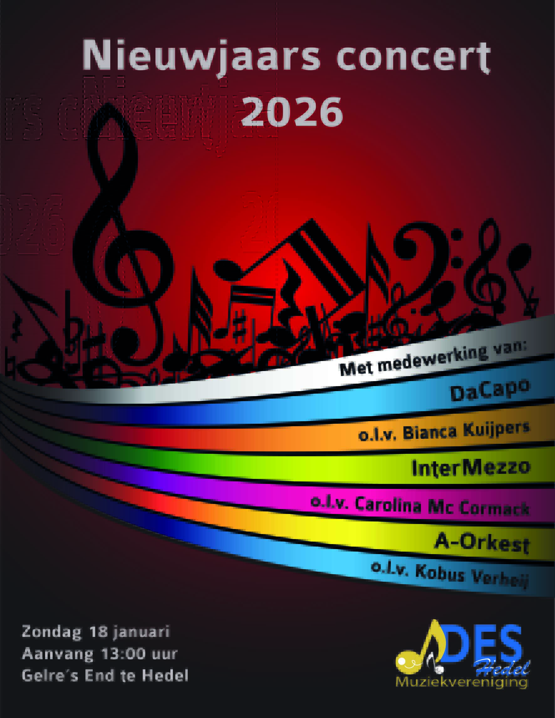 Gelre's End Molendijk 1, Hedel, NederlandWe starten het nieuwe jaar traditie getrouw muzikaal met een sprankelend concert. Het A-orkest, Intermezzo en Da Capo laten van zich horen met een afwisselend programma.